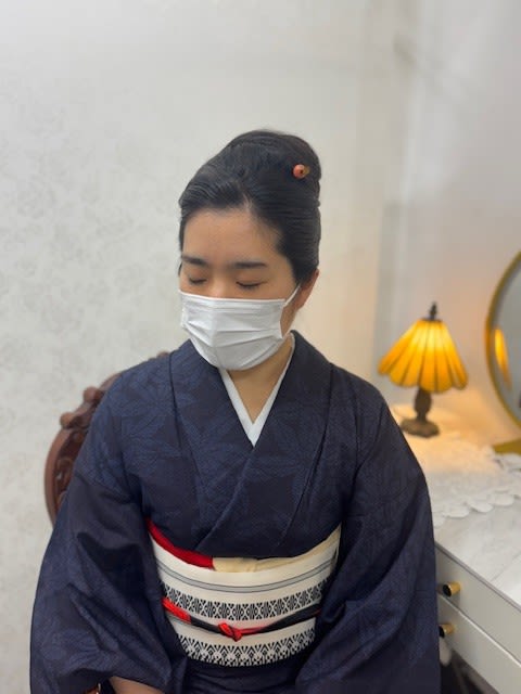 ▶︎ 帯は「博多献上帯」を後見結びで。